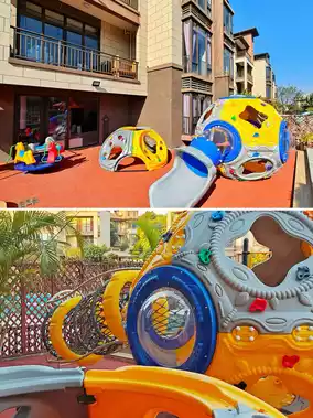 The outdoor garden on the basement level is a source of endless fun for kids! The hot tub lets you and your little ones splash around in warm water, while the slide pool is a mini water park they'll adore! 🌊 Slide down and splash into the water with non-stop laughter! 🏊♂️ There's even a fishing area where kids can try their hand at angling and experience the wonders of nature. 🎣