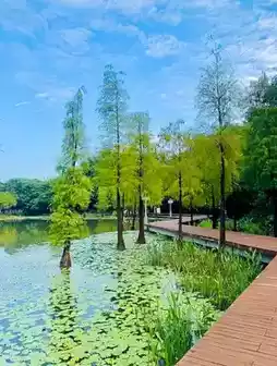 The shimmering Qingyun Lake is a sight to behold. Strolling along the lakeside, with a gentle breeze caressing my face, all my worries seemed to melt away. Climbing to the top of Taiping Mountain, I was treated to a panoramic view of the entire park and the cityscape. The sunset was breathtakingly beautiful. I didn't expect to find a lantern exhibition area featuring "History is a Meow," which is perfect for taking kids. It must look adorable when lit up at night!