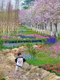 Light-colored or traditional Chinese-style clothing is recommended, as it complements the cherry blossoms🌸. Many corners of the park are perfect for photos. Taking pictures under the cherry trees, capturing silhouettes or close-ups, looks great. For eye-catching shots, the Barbie Speed Way, Deer Wild Wonderland, and Rainbow Flower Field offer strong atmospheric vibes.