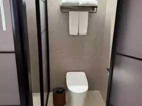 The room's design perfectly matches my minimalist taste. The bed is soft and comfortable, and after two nights, I felt completely rejuvenated! The bathroom is well-designed with separate wet and dry areas, the shower temperature is stable, and the provided toiletries have a fresh scent. However, as a coffee lover, I think having a mini coffee machine or instant coffee packets in the room would greatly enhance the experience. In terms of cleanliness, the room was spotless, even the corners of the bedside table were meticulously cleaned, giving a very comfortable feeling.