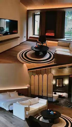 Rooms come in various styles—spacious duplex lofts, round-bed rooms, and family suites—all bright and airy. The plush bedding ensures a restful sleep, while some rooms feature cozy balconies perfect for unwinding. Bathrooms are well-designed with separate wet/dry areas, and bathtubs include disposable liners. Even the kettle and hairdryer (Little Bear brand) reflect thoughtful touches.