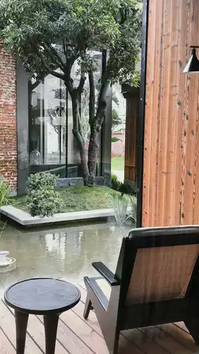 Transformed from an old textile factory, it retains industrial-era red brick walls and towering chimneys while blending in contemporary Chinese elements. The fusion of old and new creates an immersive atmosphere, transporting you back in time. Arched corridors and sunlit courtyards are filled with artistic details. The lush garden and koi pond add a serene oasis amidst the urban hustle.