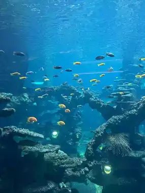 Stingrays and small sharks swim overhead, kids keep saying "Wow! Fish!" Highly recommend the ocean-themed restaurant! You can watch fish swim by the window while eating, feels like a dream, not like a typical park cafeteria~ But be sure to go early!