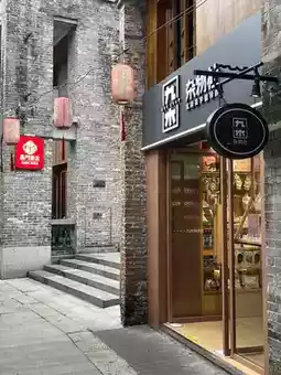 The entire area preserves the architectural style of traditional Lingnan buildings, while incorporating modern shops and food brands. You can find places like Gaga (light meals), Xiaolongkan hotpot, bubble tea shops, and more.