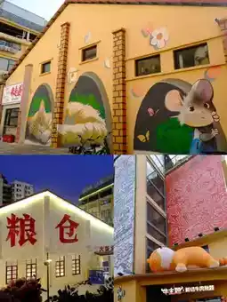 Located on the Beijiang River embankment, the 1982 Creative District • Jiangbiancang was once a granary. After renovation, it has become a popular online landmark integrating culture, leisure, and food. On a clear day, you can witness a stunning sunset, with the entire Jiangbiancang bathed in a vibrant orange glow. It's a truly stunning photo opportunity! The vibrant color palette, combined with the vintage yellow tones of the old granary, creates a surprisingly harmonious harmony.
