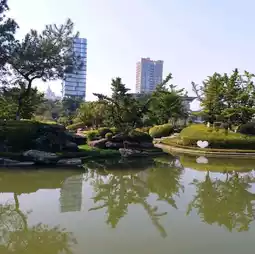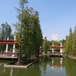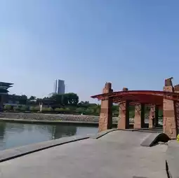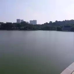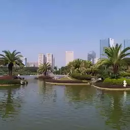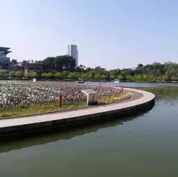 Qiandeng Lake Park in Foshan City is quite large and is surrounded by trees. The greening is very good, and the artificial lake creates beautiful scenery.