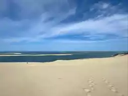 The atmosphere is peaceful yet full of energy, with the wind shaping the sand into ever-changing patterns. Visitors often bring a picnic or simply sit to watch the sunset paint the sky in shades of gold and pink. Whether for adventure, photography, or quiet reflection, Dune de Pilat offers a unique and unforgettable experience surrounded by the raw beauty of nature.