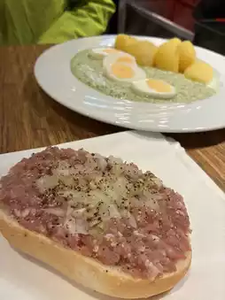 The fresh pork tartare from the butcher shop is a delicacy🐷. Experience raw pork, something you can't try in Japan! Even just exploring the market is enjoyable.