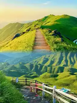 🌟Walking up along the road, you will see the stairs leading up the mountain. Pink and green windmills are a must-visit, and there are commemorative plaques at the 520, 999, 1314 steps for photo opportunities. There is a moon swing at mid-mountain, which is very romantic. Occasionally, you may encounter groups of goats coming down the mountain.