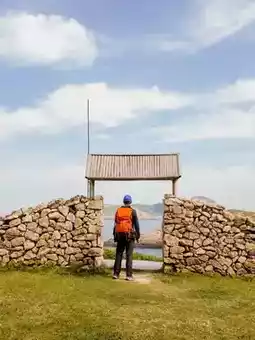 6. Walking along the island's circular road, climbing to the highest ridge line, you can overlook the entire island