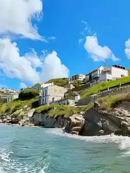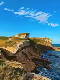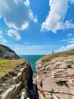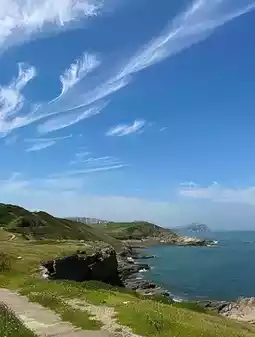 On the island, cattle and sheep stroll leisurely on the lush hills, forming a peaceful pastoral scene with the blue sky and white clouds. The Umbrella Reef, with its unique shape, is a frequent visitor to tourists' cameras, and the caves between the reefs seem to hide ancient legends. The Yixiantian Scenic Area is a masterpiece of nature, with the cracked reefs like a gateway to another world. Along the island road, on one side is the vast sea, and on the other side are the poetic stone houses on the cliffs, with breathtaking scenery at every step.