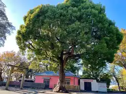 As you pass through the torii gate, you will see a tall sacred tree that makes you look up! It looks so lively!