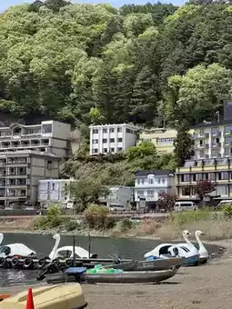 🗻 This is another viewpoint where you can see Mt. Fuji clearly and fully. Today I was very lucky. There are boat rentals and paddle boats at this point. We can walk around, relax, and take pictures as we please. Take the bus to another station and there will be a boat trip service. You can buy a ticket and take a boat trip to see the lake. 1 round is about 30 minutes.