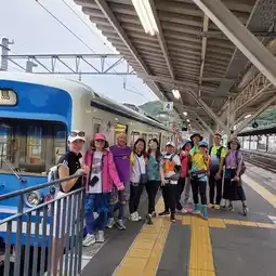 It takes about 15 minutes to walk from Kawaguchiko Hotel to the train station, take a bus to the first station trail entrance, start climbing, stop by a small grocery store for lunch, and meet a group of older brothers and sisters who are watching birds with high-powered cameras and telescopes. The roads along the hiking trail are mostly granular roads combined with molten river sprayed from volcanic eruptions. They are very slippery and special. The whole journey takes about two hours, with a slight slope. When we arrived at the fifth station, the weather was bad and it was raining and very cold. We went to the restaurant to drink hot drinks and a very special Mount Fuji melon cake 🗻 while waiting for the bus to take us back to the first station. This one-day trip is very comfortable but we dare not walk.