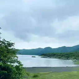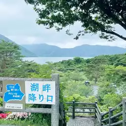 This lake is the westernmost of the Fuji Five Lakes and is close to Fujinomiya City in Shizuoka Prefecture. On cloudless days, you can see the majestic Mt. Fuji from this spot. Unfortunately, on this day, the clouds were thick and we couldn't see anything...