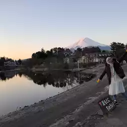 in Fujikawaguchiko, we stayed at K’s Guesthouse. At dawn, we walked about 10minutes to the lake. The sunrise view was insanely beautiful!
