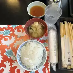 There's a menu to order via tablet, so we ordered a shrimp tempura set. In the set, there's Japanese rice and miso soup, which are refillable for us to get as much as we want. This is awesome! 😋