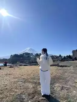 I rode my bike around Lake Kawaguchi and picked out a few places that I thought were must-visit places. They were beautiful, quiet, and great for taking photos. The first place I recommended was Oike Park. The snow-capped mountains in the distance and the nearby lake complement each other beautifully, and it feels like everything will be calm here.