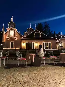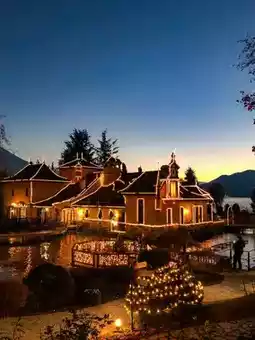 It is located on the shores of a lake overlooking Mt. Fuji and recreates the streets of medieval Europe.