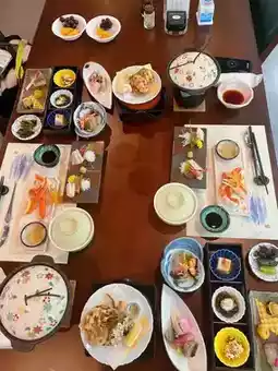 Yamadaya Hotel is located on the shores of Lake Shojin, where it is not very crowded, making it a peaceful accommodation choice. The price is relatively reasonable, and it offers a one-night, two-meal service, including dinner and breakfast, both of which are served in kaiseki cuisine style, which is a very good deal.