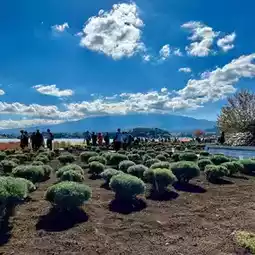 Oishi Park offers stunning panoramic views of Lake Kawaguchiko with Mount Fuji as its backdrop. The park is renowned for its picturesque setting, especially during cherry blossom season in spring & autumn foliage season.