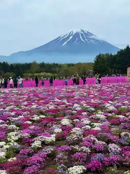 💡Point💡☑︎Pink carpet! Spectacular moss phlox🌸☑︎Collaboration of Mt. Fuji and flower fields☑︎Many photo spots📷☑︎Full bloom from 4/29 to 5/10! ~My impressions after actually going there📝~I was surprised at how spectacular it was🫢I was soothed by the eye-opening scenery🥹Mt. Fuji on the pink carpet, and many photo spots◎Recommended for dates, with dogs, with children, and for taking photos! It's spacious, so you can enjoy it without feeling crowded🌸