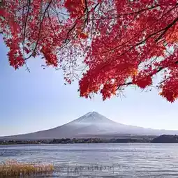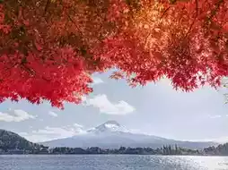 The autumn leaves on the lakeside with Mt. Fuji is the best view.