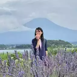 Enjoy the flowers at Oishi Garden, amidst a field of blooming lavender flowers that give off a sweet fragrance throughout the garden. Those who love lavender will definitely fall in love with this place. The view of Mt. Fuji with Lake Kawaguchi in the middle is so beautiful.