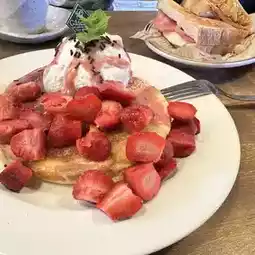 If you're tired of hotel breakfasts and happen to visit Lake Kawaguchi in Japan, this breakfast place is a great choice! Most of the diners around you are Westerners, and the bread is crispy on the outside and soft on the inside. The thick pancakes are delightfully chewy, topped with plenty of strawberries 🍓 and fresh cream, making for a truly satisfying meal!