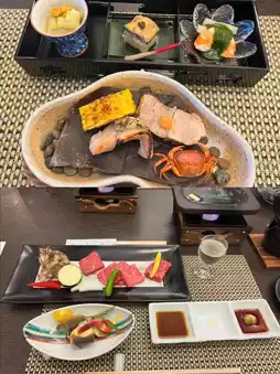 Dinner: Kaiseki cuisine, exquisite and delicious, 🍽️ I chose dinner in advance when booking a room, and shabu-shabu is also great, Wagyu beef has a super good taste, and the snacks are also very good.