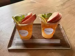 The atmosphere is cool even in summer, and I ordered peach iced tea made with peaches, which are in season in summer 🍑