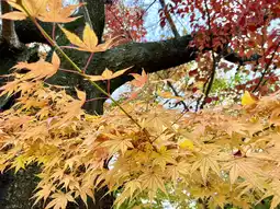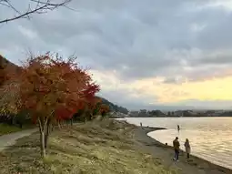 Located in Yamanashi Prefecture, Kawaguchiko is not only famous for its views of Mount Fuji but also a popular spot for autumn foliage. Every autumn, there is a Momiji Festival here. After enjoying the autumn leaves during the day, you can also appreciate the night foliage. Although it wasn't a sunny day and Mount Fuji was hiding, the autumn leaves here were still breathtakingly beautiful. It would be even more stunning with the presence of Mount Fuji!