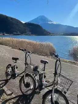 Anyone who is planning to stay in Tokyo, come to Kawaguchiko and see the view of Mt. Fuji easily in a 1-day trip without staying overnight. It's very easy to travel. Normally, when we come to Lake Kawaguchiko, we take a bus around the city to get off at tourist spots by the lake. But this time, I will review a unique way to see Mt. Fuji, which is winter cycling! π²π€§ ,, At first, I was afraid of the cold, but my boyfriend wanted to cycle, lol. When I got to cycling, I must say that it was so beautiful, screamingly beautiful π