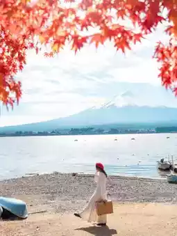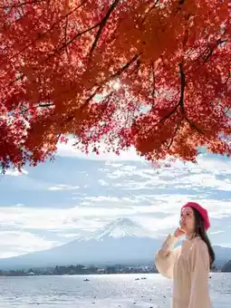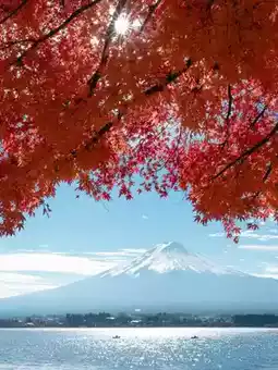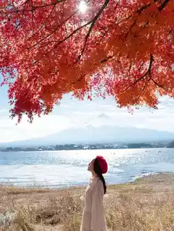 The charm of red leaves along Lake Kawaguchiko and the volcano