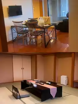 I mainly want to talk about the room. This time, I booked the "Japanese-style room with open-air bath (12 tatami mats) + living room" and was shocked. It is the largest ryokan I have ever stayed in. It has a separate dining room, living room, tatami area, separate bathroom, and a large private terrace. The terrace has a foot bath area and a hot spring area. I feel like this room is a bit of a waste for just the two of us. It is more suitable for a large family. The private bath is spacious with unbeatable views (as shown on the cover). The living room also has a massage chair. After a bath, you can get a massage and then have dinner. It is so enjoyable. Although the facilities and decor are a bit old, they are very clean.