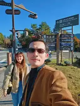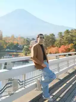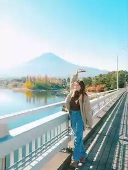 Today, we will take you to walk around the Kawaguchiko Lake Bridge. Luckily, the hotel we stayed was near the Kawaguchiko Lake Bridge. In the morning, we could walk there. The leaves are starting to turn red and it's so beautiful!!! The atmosphere is great. There are people cycling and jogging around the lake. I want to come jog next time too (^o^)