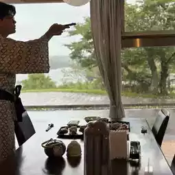 ✨Hotel Highlights: It is a small ryokan with a great view, quiet, not crowded. At the lake in front of the hotel, there are people camping. The atmosphere is good, so chill that I want to join in.
