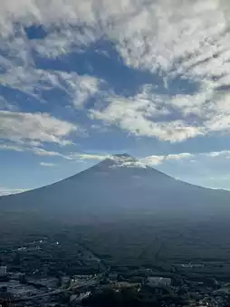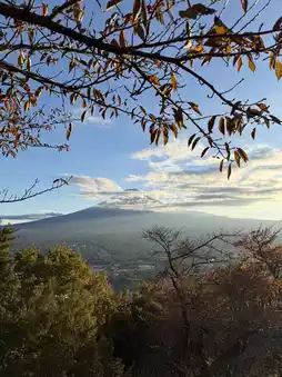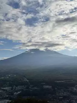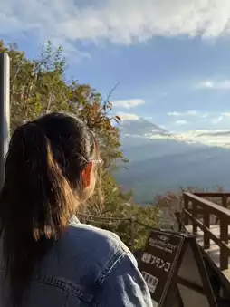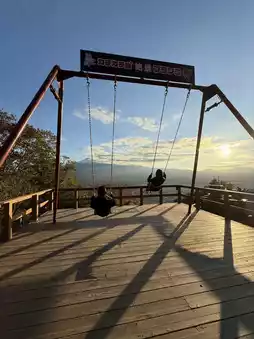 Tenjoyama Park offers a panoramic view of Mount Fuji, but it's not always visible. Often, clouds cover Mount Fuji. There are many photo spots at the observation deck, and playing on the swing costs ¥500 per person. After passing the swing and walking further up, you'll find another observation deck!