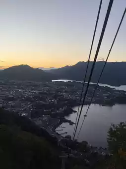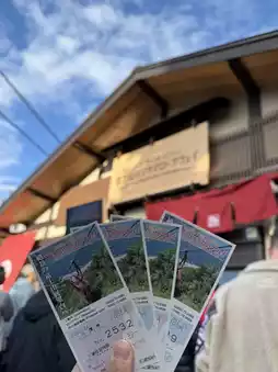 After getting off the train, we took the Red Line sightseeing bus to the hotel first. I didn't buy a Day pass, so it cost ¥250 per ride. Since it wasn't time to check in at the hotel yet, we had lunch nearby and then went to Tenjoyama Park to take the cable car. The round trip on the cable car cost ¥1000, and we waited for almost 30 minutes.