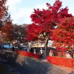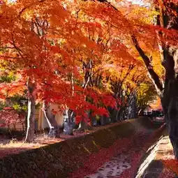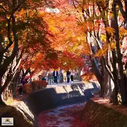 🍁🎏🍂It is one of the most popular and beautiful spots to see the changing leaves of Fuji. We can see the maple leaf tunnel that surrounds the road by the lake and turns a beautiful red. There are more than 100 giant maple trees that are over 80 years old planted on both sides of the river for a distance of 150 meters, and there are more than 500 maple trees in other areas, stretching for more than 350 meters along the Nashikawa River.