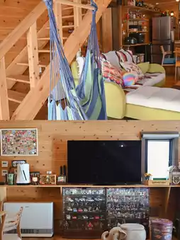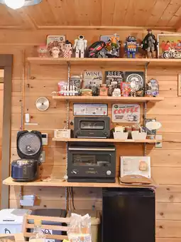 There are seven beds, one futon, a full set of BBQ equipment, and even a wood stove, so it's very warm even in winter.