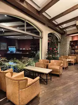 There is a small shop on the first floor, selling souvenirs and gift boxes. The Bar area overlooks Mount Fuji and provides hot drinks 24 hours a day, including coffee, tea and chocolate. Japanese-made red wine is available for sale in the evening. The restaurant is also on the first floor, where breakfast and dinner are served.