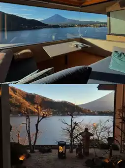 Want to experience a hot spring♨️ at the foot of Mount Fuji? Then come to Unuya, this hotel has beautiful lake and mountain scenery, and an open-air hot spring facing Mount Fuji, allowing you to talk to Mount Fuji while soaking in the hot spring.