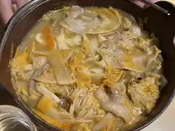 The hot pot here gives a lot of noodles. I couldn't finish it... But the soup is very delicious. I just found out that the soup sauce is made from miso mixed with pumpkin and abalone liver. The noodles are similar to udon, but they are a bit flatter... The soup is really delicious and creamy, probably because of the soup.