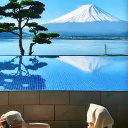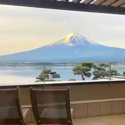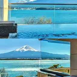The hotel is located on the north shore of Lake Kawaguchi, just a 10-minute drive from Kawaguchiko Station. The hotel is built by the lake, and all guest rooms and open-air hot springs offer unobstructed views of Mount Fuji and Lake Kawaguchi. You can also see the hotel's unique "Reverse Fuji" view.