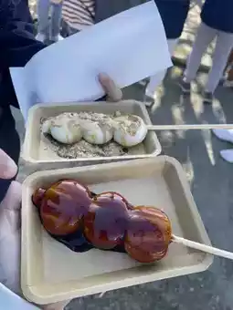 ✅ Tanuki Dango Snack – Try the warm, sweet rice dumplings at the top!