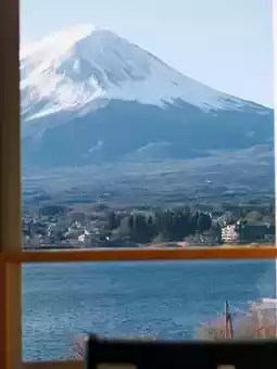 The room is spacious and clean, the floor-to-ceiling windows face Mount Fuji, and the view is unobstructed