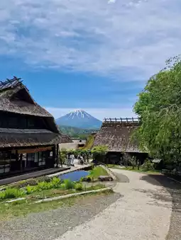 We visited Saiko Iyashi-no-Sato Nenba, a peaceful village near Lake Saiko with traditional thatched-roof houses and a stunning view of Mt. Fuji. It was quiet and calming perfect for just walking around, taking photos, and soaking in the fresh air. Some houses had local crafts and souvenirs, while others showed how people used to live in old Japan.