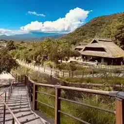 **"Where time stands still – wander among thatched cottages with Fuji as your backdrop."** 🌿🗻