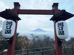 Upon reaching the summit, my greatest awe was the breathtaking panorama of Mount Fuji. Though lightly shrouded in mist, I could still see the pristine white snow atop the summit and the expansive cityscape below. I particularly like one photo: the beauty of Mount Fuji framed by a Japanese torii lantern with the words "Kawaguchiko" written on it, brimming with Japanese charm.